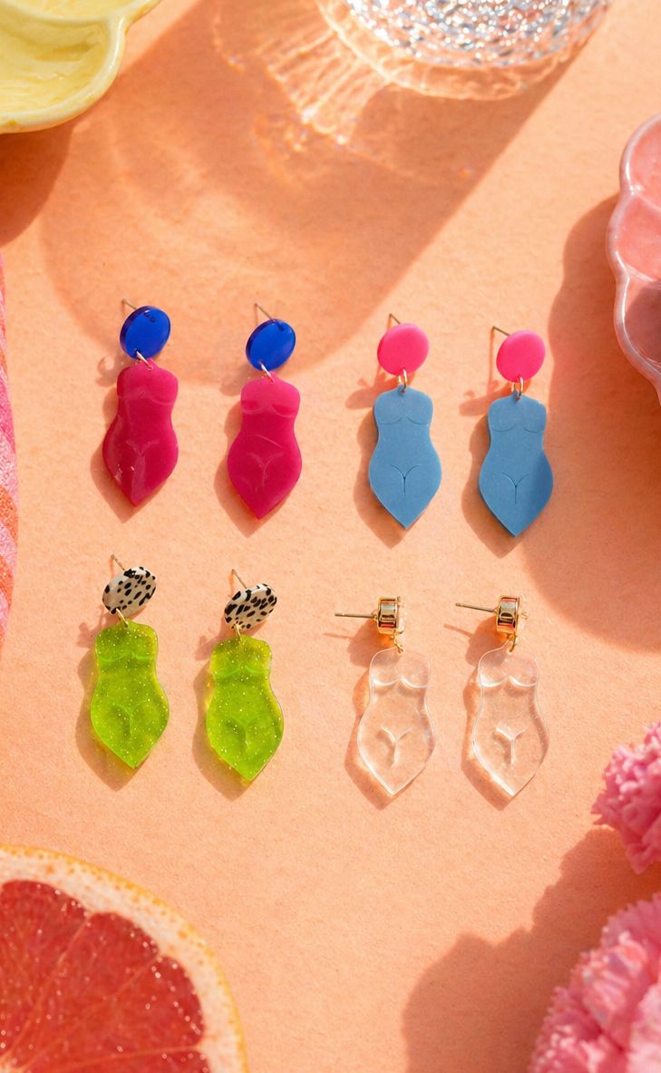 Gefertigt aus hochwertigem Acryl sind die Statement Ohrringe angenehm leicht zu tragen und sorgen trotzdem für maximale Wirkung. Die kräftigen Farben in Pink, Lila, Gelb, Orange und Grün machen sie zum idealen Accessoire für sonnige Tage, Urlaub, Partys oder einfach dann, wenn dein Outfit gute Laune braucht.